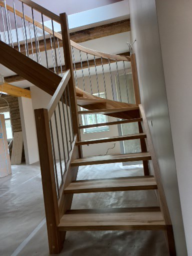 Masyvo laiptai iš uosio. Tokius laiptus galime pagaminti ir jums per 8 savaites. Jei turite specifinių pageidavimų ar klausimų, mielai padėsime!
