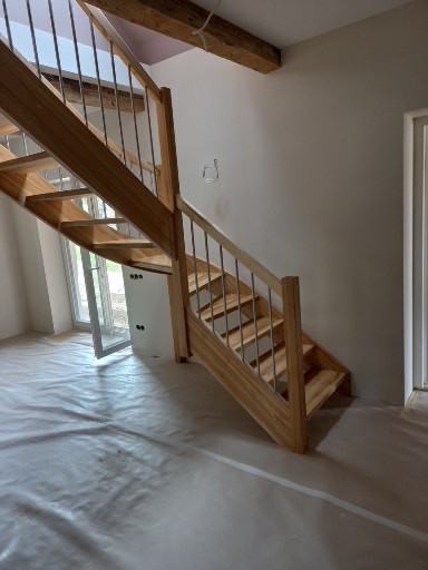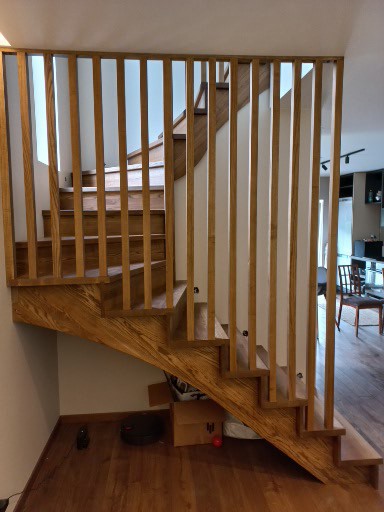 Medinių laiptų turėklams dažniausiai naudojama uosio ar ąžuolo masyvo mediena, derinama prie grindų ar pakopų.